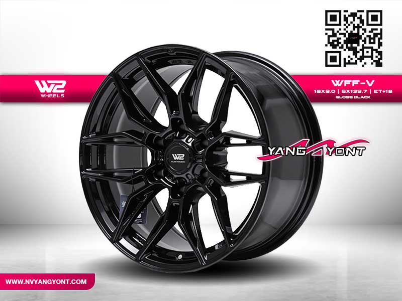 WFF-V ล้อแม็กดีไซน์เข้ม ดุดัน พร้อมเอกลักษณ์เฉพาะตัวด้วยก้านแบบ Twin-Spoke ตัดเหลี่ยมสุดเฉียบ พร้อมเคลือบผิว Gloss Black เงางาม ให้ความรู้สึกพรีเมียมระดับรถยุโรป โดยเฉพาะกับรถสายลุยที่ต้องการความเท่แบบมีคลาส