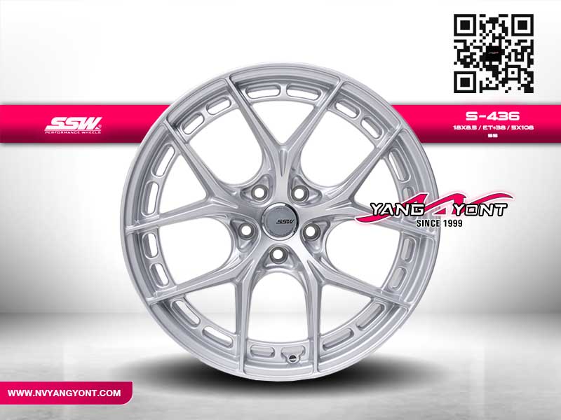 ล้อแม็กรุ่น S-436 จากแบรนด์ SSW ออกแบบแนวสปอร์ตสไตล์ยุโรปด้วยดีไซน์ซี่ถี่ เส้นคมเฉียบทุกมุมมอง น้ำหนักเบา แข็งแกร่ง รองรับการใช้งานในชีวิตประจำวันและสายขับขี่แบบ Performance ได้อย่างลงตัว รุ่นนี้มาในขนาด 18x8.5 นิ้ว Offset ET+38 รูน็อต 5x108 สี SS เงิน เงาสวยสะดุดตา